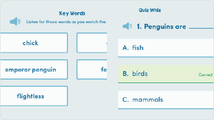 Each video is also supported with activity pages, vocabulary previews, and interactive quizzes.